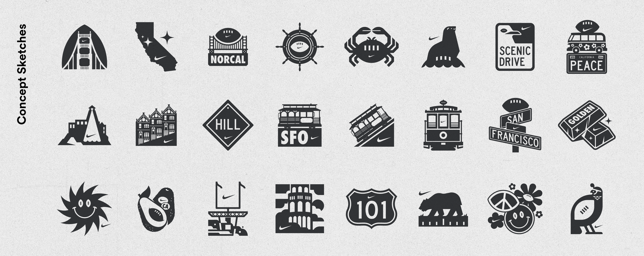 I worked with the team at Tara Wilson Agency to develop a set of custom illustrations for Nike American Football’s Super Bowl LX fan activation event in Daley City, Ca. Working with an established visual center and design language I created a series of illustrations that were inspired by California, football, and Nike. I went through multiple rounds of exploration and discovery before applying the final style. The illustrations were turned into limited-edition patches, stickers, and metallic heat-transfers to be applied to special Nike event merchandise. The only thing that would have made this project better is if the Bills had gone to the Super Bowl. Maybe next year.